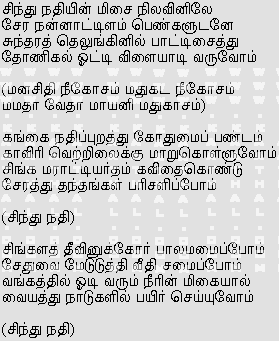 Song by Subrahmanya Bharathi in Tamil Sindhu nadhiyin misai nilavinilE The song is all about commodity services exchange amongst the Indian states - There is one line where Subrahmanya Bharathi says we should exchange Marathi poetry for Salem of India Ivory. Kai Kodutha Deivam Sindhu Nadhiyin Misai Lyrical Delights. Listen to Sindhu Nadhiyin Misai From Kaikodutha Deivam from the movie Celebrate Independence Day - Tamil only on JioSaavn.